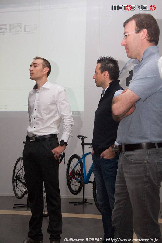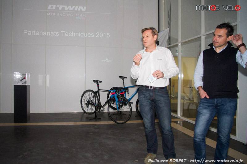 Depuis quelques années déjà, B'Twin est partenaire technique de l'équipe FDJ.fr. Partenariat technique, les mots ne sont pas choisis par hasard. Car B'Twin ne veut pas d'un simple sponsoring mais s'appuie aussi énormément sur les coureurs de l'équipe pour faire progresser leurs produits. Cela a été maintes fois répété par Yann Carré (Directeur de la communication) et Cyril Saugrain, qui étaient à la barre de cette conférence.