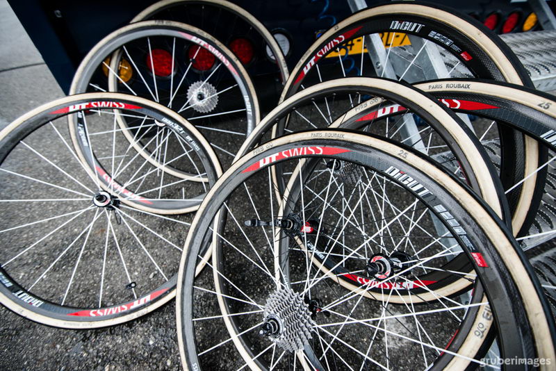 Chez IAM Cycling, les coureurs roulent à l'entraînement sur des pneus tubeless Schwalbe et en compétition, uniquement sur du boyau.