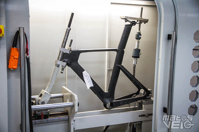 La rigidité d'un cadre est mesurée avant et après tests. Cela permet de vérifier la bonne tenue du cadre dans le temps. Une perte de rigidité qui est minime, tant est si bien qu'on ne peut pas la déceler humainement en pédalant.