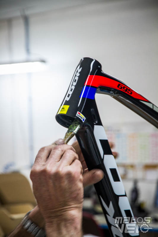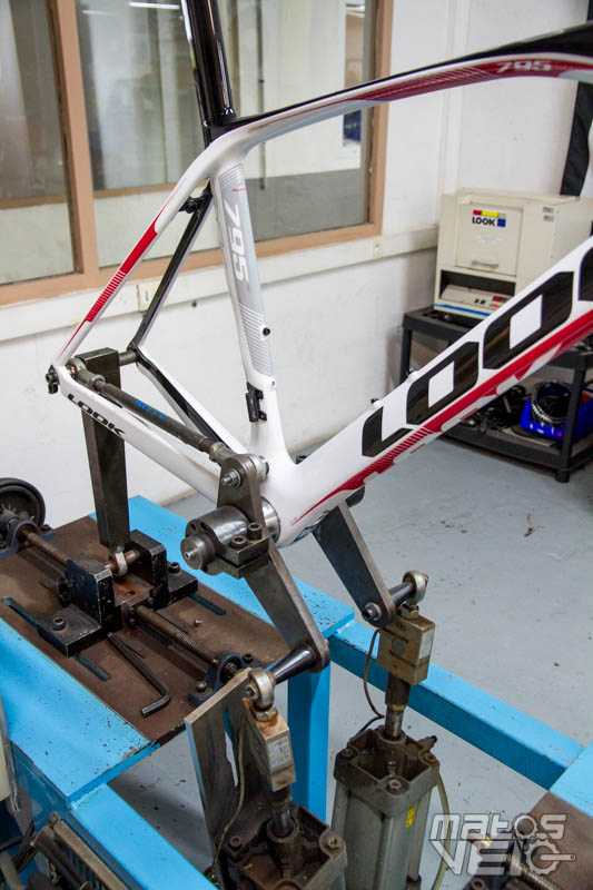 C'est cette mesure de rigidité qu'utilise aussi Look pour vérifier, après chute, si un cadre a subit des dommages au niveau de la fibre. Car un cadre qui perd de sa rigidité, c'est synonyme de ruptures dans le fibre (fibres coupées ou délamination).