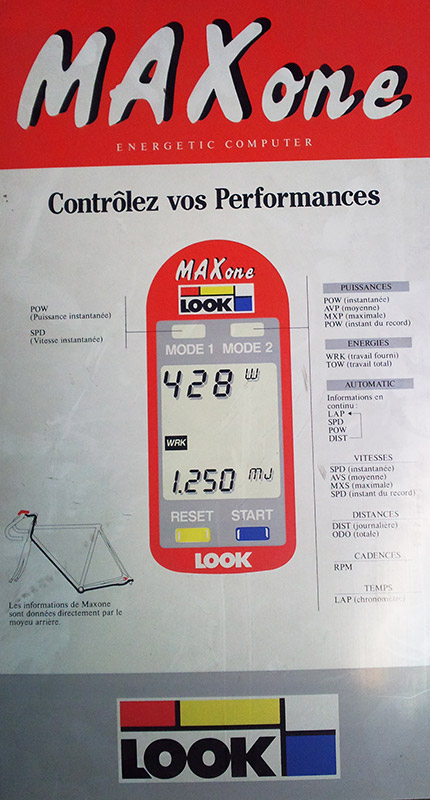 En bonus, une vidéo du Tour de France 1989 où un certain Marc Madiot était équipé du Look Maxone et les téléspectateurs avaient droit à l'image (en incrustation) du compteur avec la vitesse et la puissance instantanée ! Une chose que l'on ne voit malheureusement pas aujourd'hui.