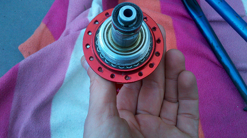 Une des particularités de ce capteur de puissance, c'était donc son moyeu de couleur rouge ! Unique à l'époque, tous les moyeux étaient couleur alu.
