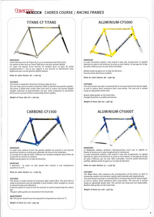 On note sur la capture ci-dessous que les cadres carbone de l'époque étaient aussi lourds que l'alu. Il fallait opter pour le modèle en titane pour arriver à grappiller quelque 300 grammes.