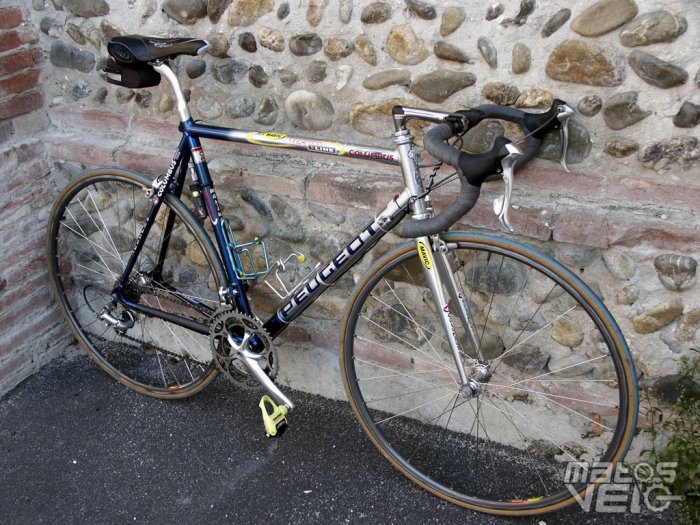 Le vélo complet en alu équipé d'un groupe Ultegra et de roues Mavic basiques étaient annoncés à 9.5kg. Pour ma part, j'avais fait le choix de faire un montage personnalisé comme ça se faisait majoritairement à l'époque.