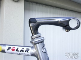 Raison pour laquelle on trouve sur le cintre deux supports de part et d'autre de la potence. A droite, le support du compteur Avocet, à gauche, celui de la montre Polar Edge NV (qui est toujours dans son carton... 999F). Plutôt rudimentaire par rapport à ce qui se fait aujourd'hui.