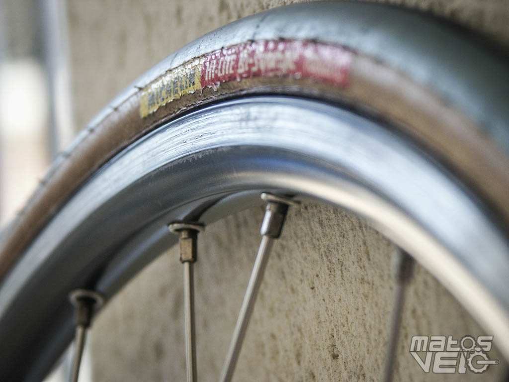 Des gommes tendres sur les côtés pour une excellente accroche en virage et une gomme dure au centre pour favoriser la vitesse et l'endurance. Les sections étaient aussi relativement fines. Le 23mm commençait à se populariser, mais les sections de 20mm étaient encore légion, si possible gonflés entre 8 et 9 bars !