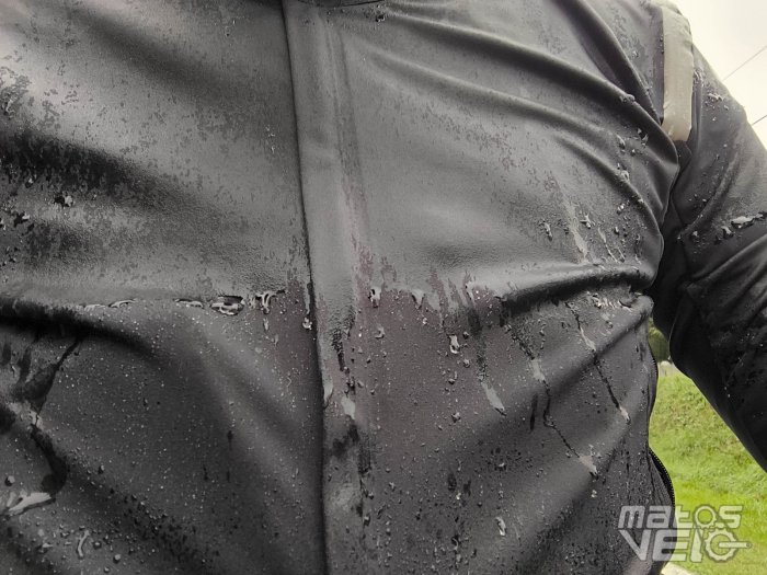 Si elle n'est pas affichée comme étant totalement imperméable sous la pluie, j'ai tout de même pu apprécier les qualités de déperlance sous une forte pluie pendant 1h30 à environ 10/12°C . Au-delà, l'eau finit par s'infiltrer, mais seulement de façon très limitée.