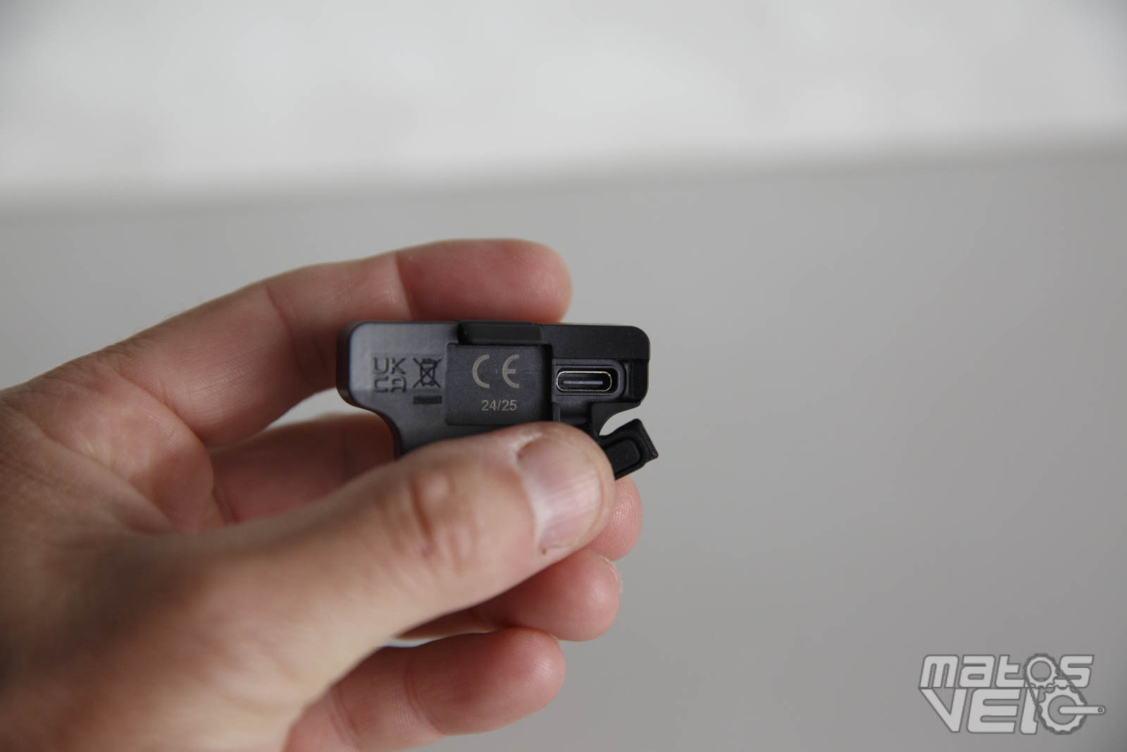 La charge se fait en 2 heures avec un câble double USB-C inclus. Il faut pour cela démonter les lampes puisque le connecteur se trouve sur la face en contact avec le levier arrière des pédales.